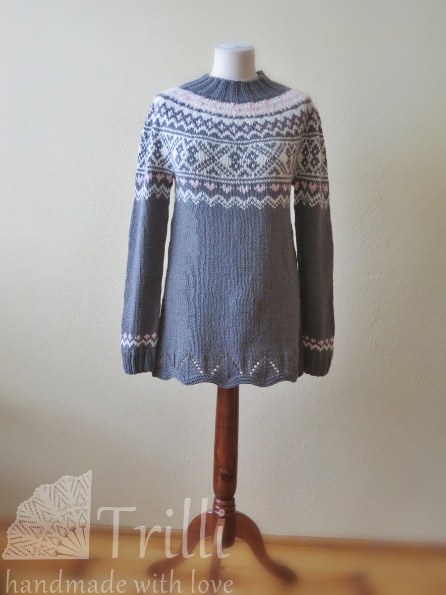 No i tak dziubałam,prułam...przerabiałam z rozmiaru dla dorosłych.No i chciałam inaczej pobawić się wzorem. Dobrze że to moje dziecko rośnie,bo przesadziłam.Sweter wyszedł po prostu duży.